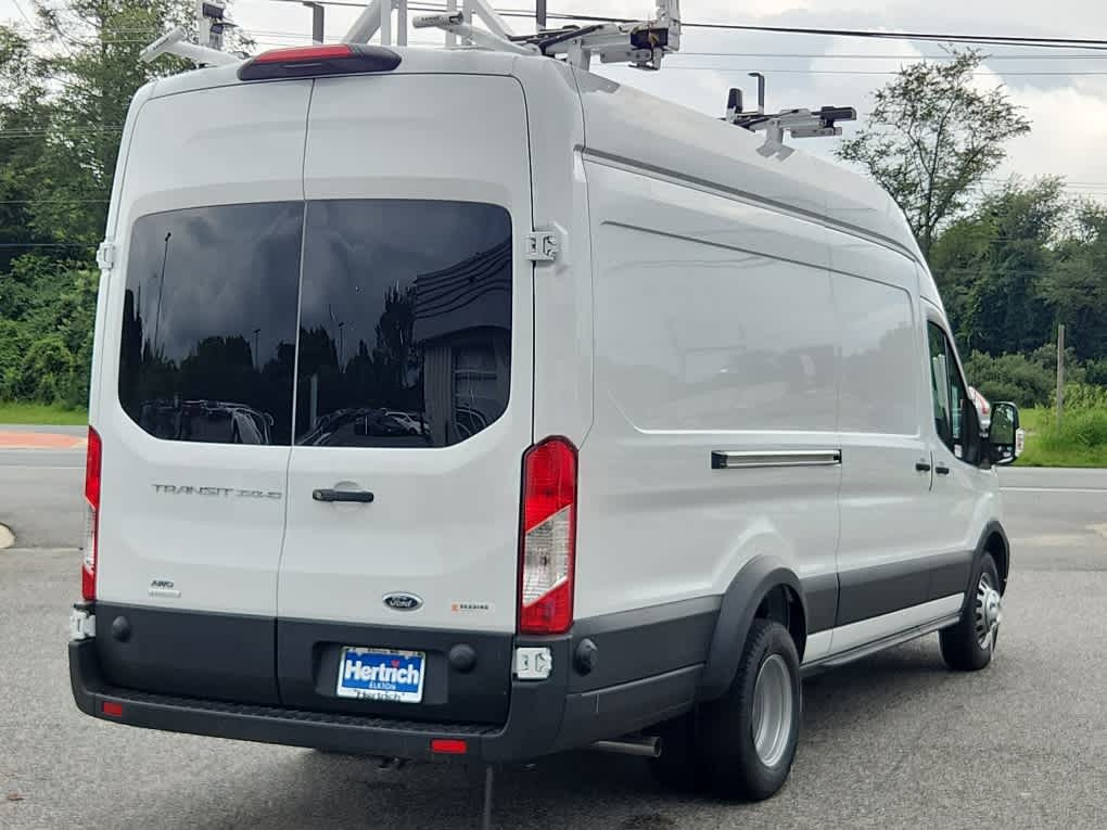 TRANSIT T350HD DUALLY WITH TOP-OF-THE -LINE READING CONTRACTOR PACKAGE INTERIOR SHELVING UNITS AND DROP DOWN LADDER RACK INLCUDED.