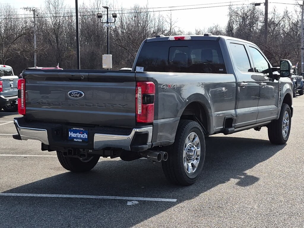 ENGINE: 6.7L 4V OHV POWER STROKE V8 TURBO DIESEL B20 manual push-button engine-exhaust braking and Operator Commanded Regeneration (OCR), 48 Gallon Fuel Tank, 250 Amp Alternator, GVWR: 12,000 lb Payload Package, 3.31 Axle Ratio, Dual AGM 68 AH Battery, LARIAT ULTIMATE PACKAGE Tailgate Step & Handle, Head-Up Display, 4-Way Adjustable Headrests, Power-Deployable Running Boards, Radio: B&O Unleashed Sound System by Bang & Olufsen, HD Radio w/14 speakers including subwoofer, LARIAT PREMIUM PACKAGE lane departure warning, Pro Trailer Hitch Assist, Ford Co-Pilot 360 Assist 2.0, rear view camera and reverse brake assist, Pre-Collision Assist, Automatic Emergency Braking (AEB), pedestrian detection, forward collision warning, dynamic brake support and intersection assist, Post-Collision Braking, Lane-Keeping System, lane-keeping alert, lane-keeping aid and driver alert, Front & Rear Parking Sensors, Automatic High Beam, Adaptive Cruise Control w/Stop-and-Go, lane centering and predictive speed assist, Power-Sliding Rear-Window w/Defrost, Pro Trailer Backup Assist, trailer reverse guidance, TWIN PANEL POWER MOONROOF map lights and moonroof switches, CHROME PACKAGE Unique Chrome Mirror Caps, Tires: LT275/65Rx20E BSW Automatic Transmission (4), Spare may not be the same as road tire, Wheels: 20 Chrome PVD Aluminum, Chrome Door Handles, 6 Angular Bright Anodized Step Bars, Chrome Exhaust Tip, TOUGH BED SPRAY-IN BEDLINER tailgate-guard, black box bed tie-down hooks and black bed attachment bolts, SECURICODE KEYLESS ENTRY KEYPAD (DRIVERS SIDE) Integrated into the B-pillar, ELECTRONIC-LOCKING W/3.55 AXLE RATIO, TRANSMISSION: TORQSHIFT 10-SPEED AUTOMATIC SelectShift and selectable drive modes: normal, eco, slippery roads, tow/haul and off-road.